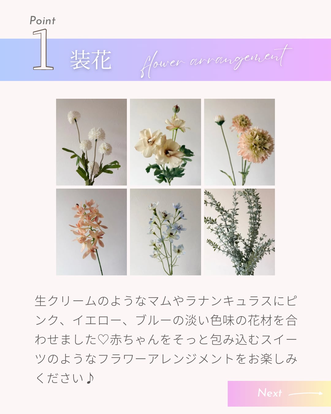 やさしい甘さのような世界観で、赤ちゃんをそっと包み込むスイーツのような空間です♡