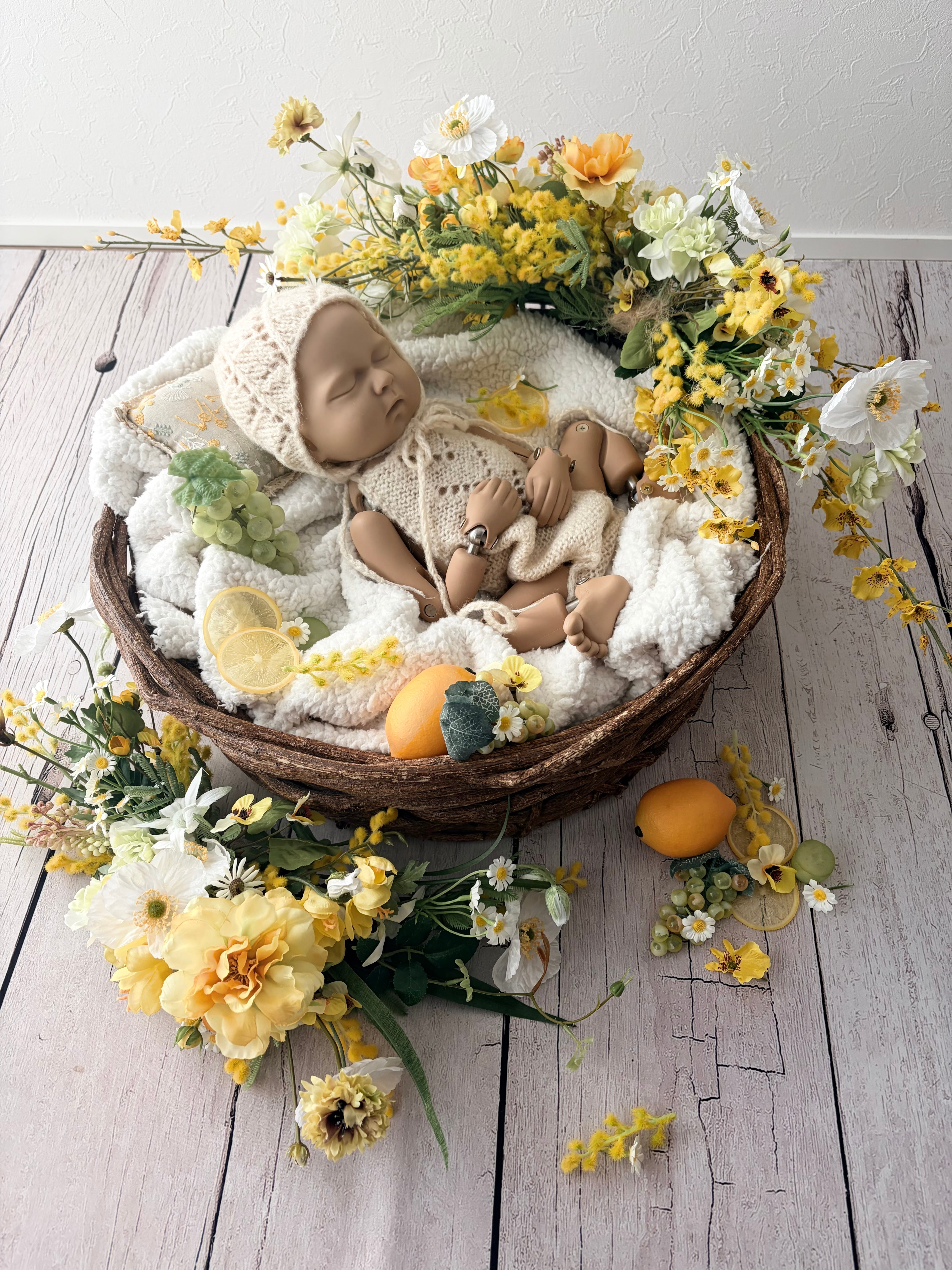 mimosaがお好きな方、春生まれのお誕生日の方にぴったりのレンタルsetになります。新生児期のニューボーンフォトにいかがでしょうか?